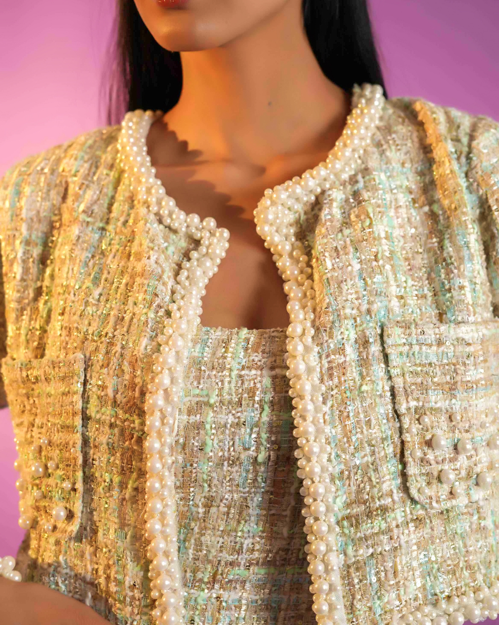 Emily Tweed Dress & Jacket With Pearl Detailing